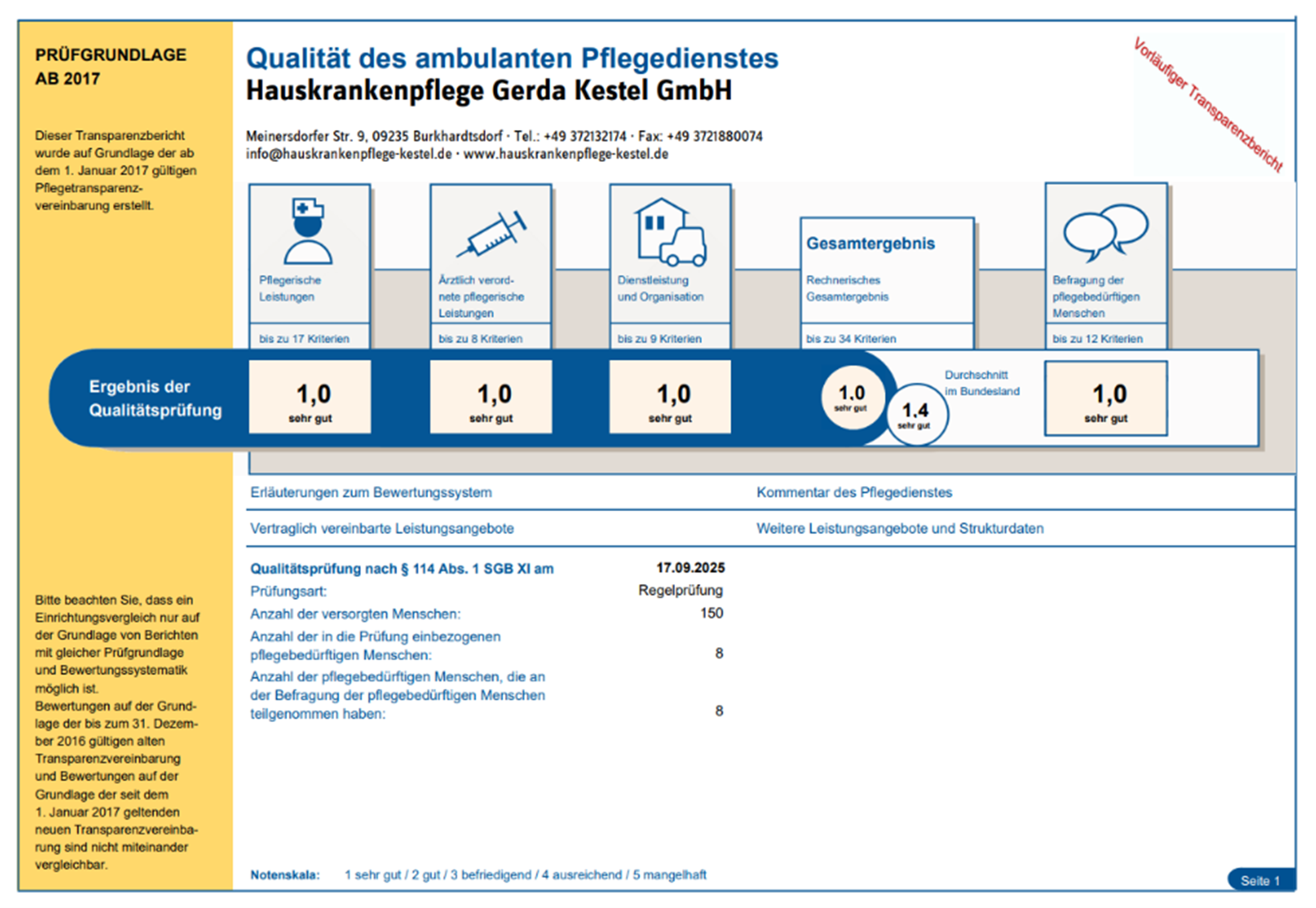Allen an der Prüfung beteiligten Kundinnen und Kunden sowie deren Angehörigen danken wir für die Mitwirkung im Rahmen der Begutachtung, aber auch für die Teilnahme an der Befragung, deren Zufriedenheit sich ebenfalls in der Bestnote von 1,0 zeigt.